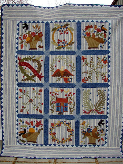 ReplyDeleteOh, I am so jealous that you made a quilt with the blue ticking fabric from the Blackbird Designs fabric. The fabric was all sold out before I discovered the pattern. I did see some for sale at a later date but I was long gone on other projects at that time.